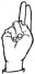 На ћирилици написано ТОМИСЛАВ ГАРОЊА састоји се из 14 слова [?]. Исписано ћириличном једноручном азбуком за глувонеме: